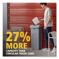 The Rubbermaid Commercial Square Container is perfect for holding large irregular objects and features venting channels for increased efficiency when removing waste. Plastic construction is durable and crack resistant, even under tough indoor and outdoor conditions.
